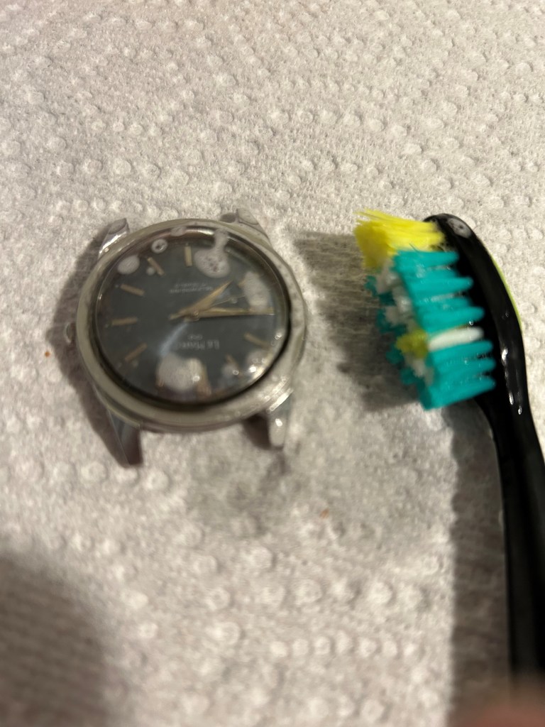 I think that it is good enough to wear. Not perfect, not showroom quality, just good enough for the vintage collector who can accept imperfections. I will eventually take it to the watchmaker and maybe the dial can be cleaned gently and see what movement I have.. It has been within a minute in the last 24 hours, not bad for a fast twitch gamble.