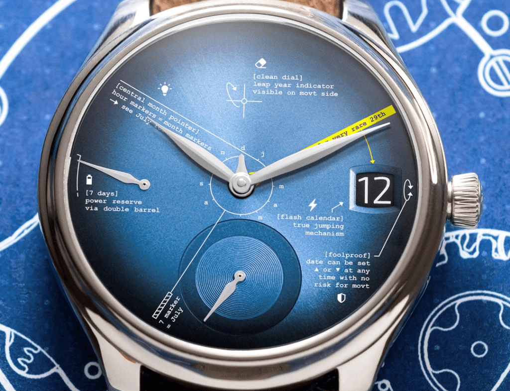 Another example is this lovely H.Moser. It takes dial text to the extreme, but somehow still manages to pull it off.