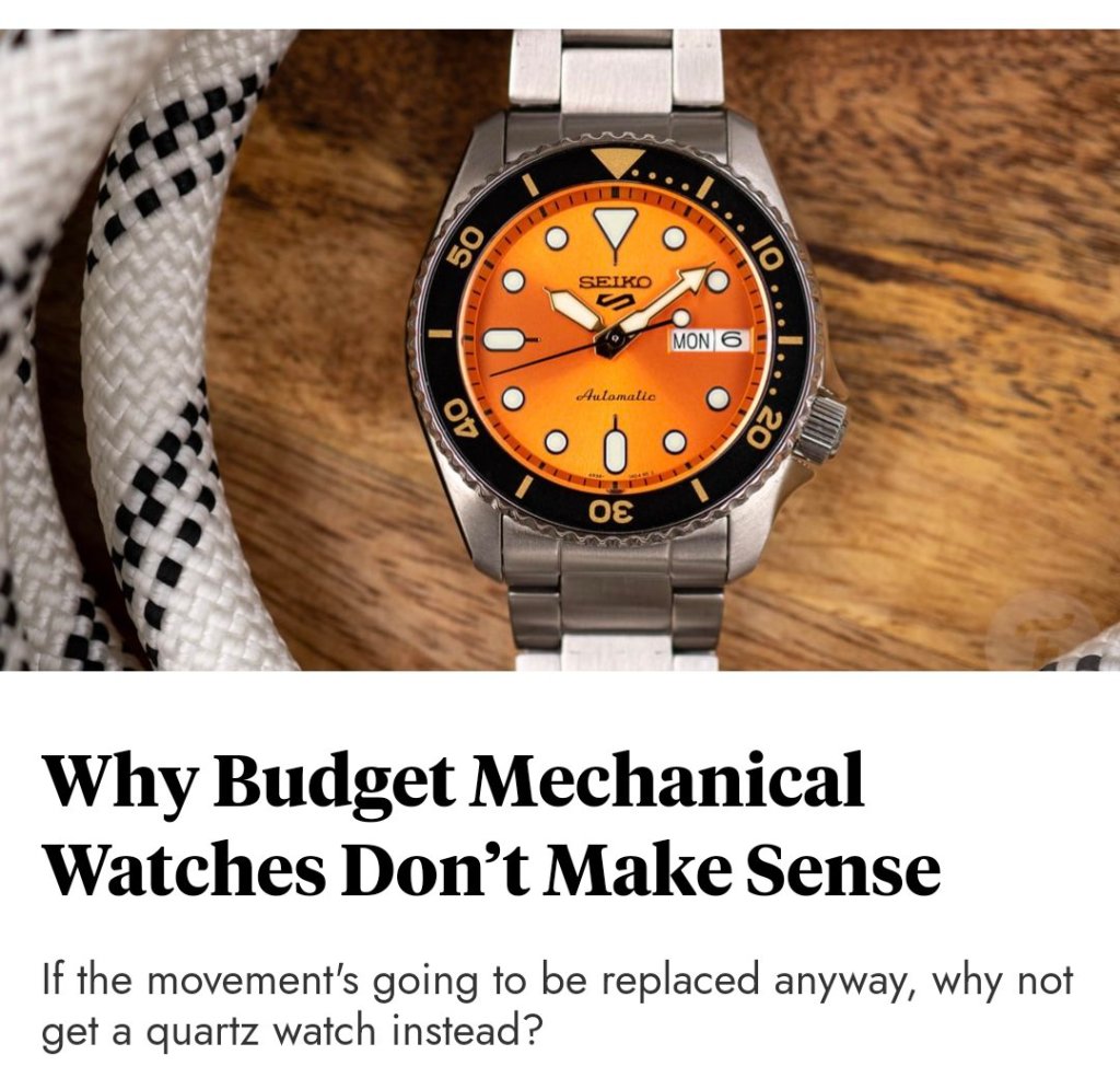 The basics of his argument were that he didn’t like the fact it was cheaper to swap out an entire watch movement in some of the budget mechanical watches, rather than getting it serviced…