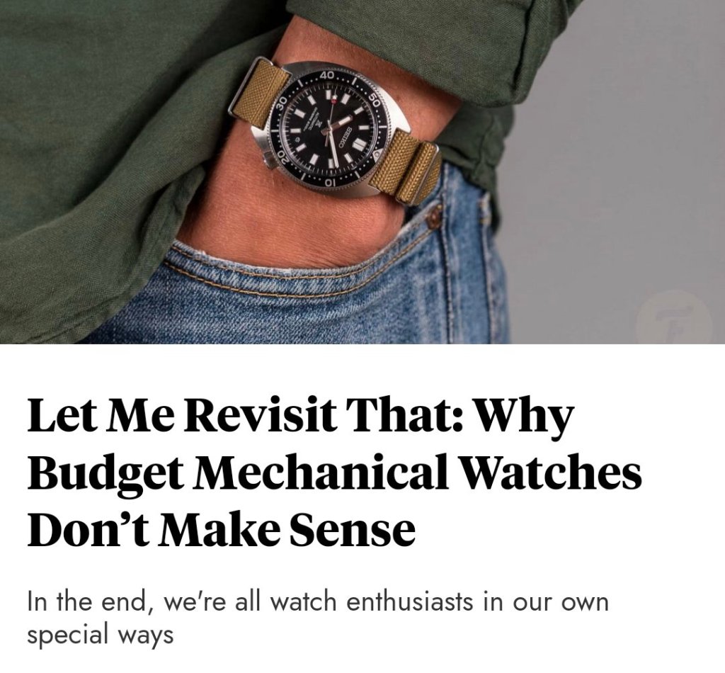 “are we saying anything with an H10 or 6R35 in it is trash? Funny how everyone raves about the Murph or Alpinist then – will you be retracting any positive articles for sub-€1000 pieces?”