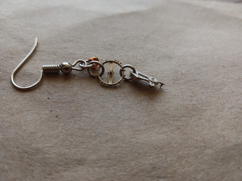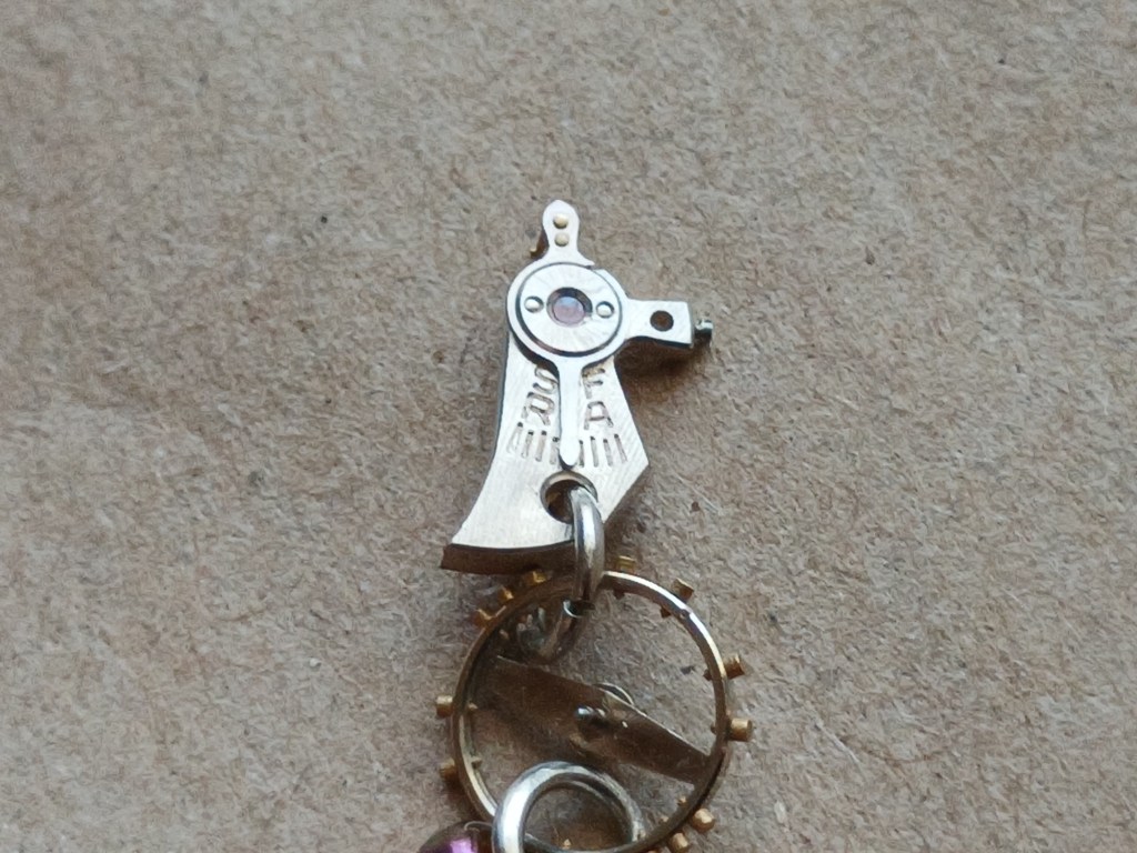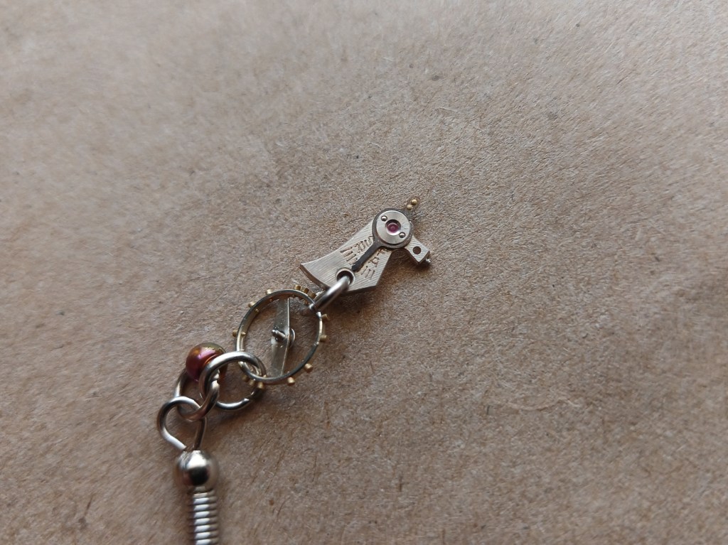 His daughter also works in the shop and I’m giving her a set of earrings made from an old watch movement. This is where that fear of loss came to fight me again. I’m destroying a piece of history! I’m abusing a machine! This is heresy! This is Chernobyl times one million! I have learnt to just tell that voice to go f*** itself. It has meddled with my life enough. I haven’t even been alive long enough to decide on a definite career path, so I have no place in my life for that little voice. The movement in question was a movement marked “520.” It was on a Lanco women’s watch, the case of which had been melted down for its gold. I have three of these movements. The watchmaker gave them to me one day for me to practice on. They all have broken balance staffs, if not additional gremlins beyond that. Few people collect women’s cocktail watches. I know that the women in my life are much happier with smart watches, so any effort and money spent to source an original case, crystal and replacement balance staff is not really worth it. I took one of the movements apart and salvaged what I could for jewellery. The balance spring was in such good condition that I removed it; I’ll probably sell it later or something.
