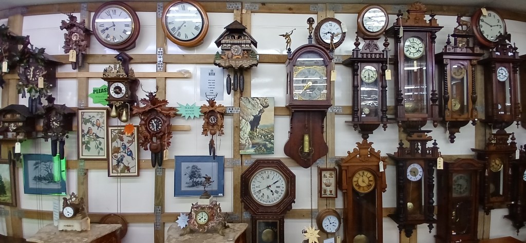 There were several walls like this and even more clocks scattered around the shop on furniture.