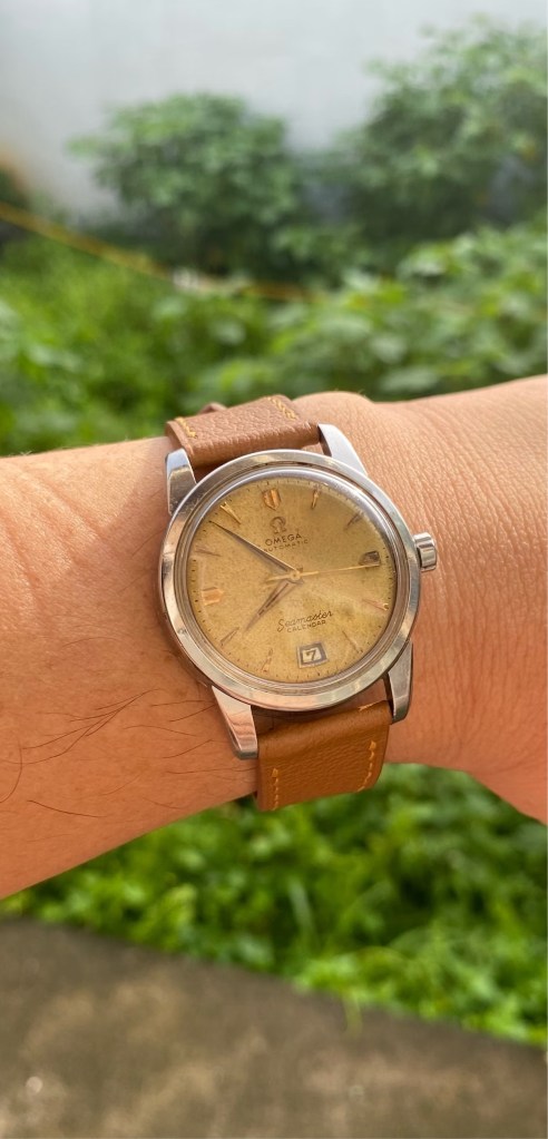 Speaking of Omega, the 1954 Automatic Omega Seamaster Calendar, which is a good-looking all-around watch and in great condition.