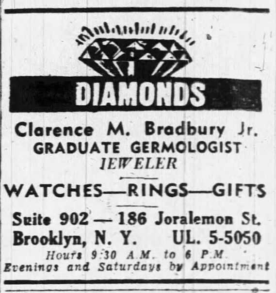 Clarence M. Bradbury owned a jewelry store in Brooklyn, N.Y.