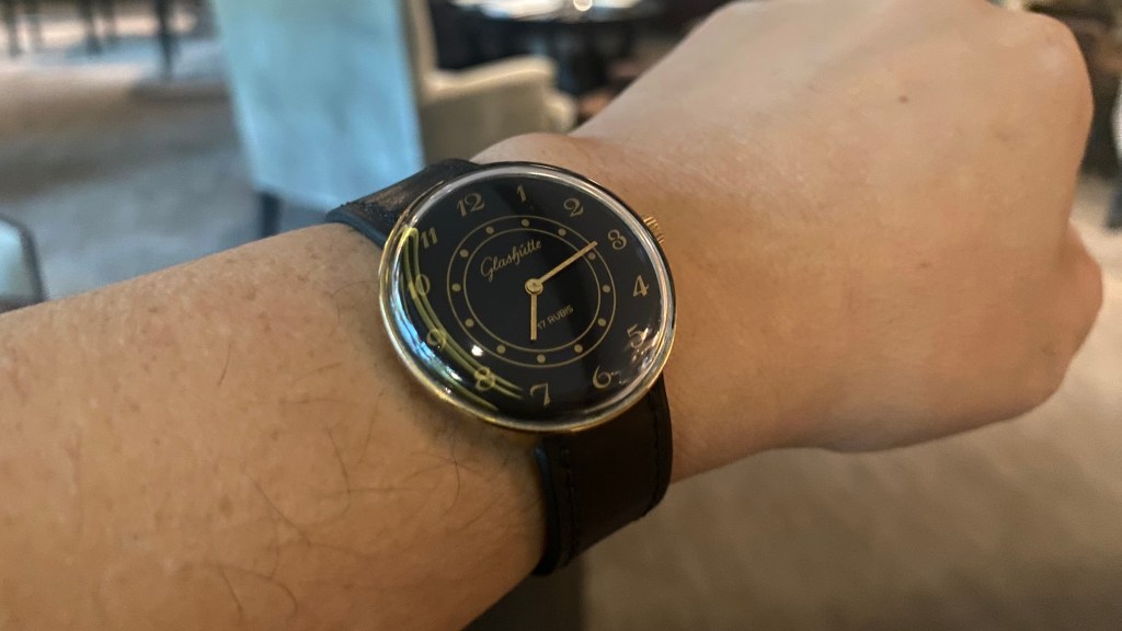 It’s a mid-70s Longines manual wind with a linen dial, 10k gold-plated. It’s not perfect. it’s better than perfect. It’s good enough.