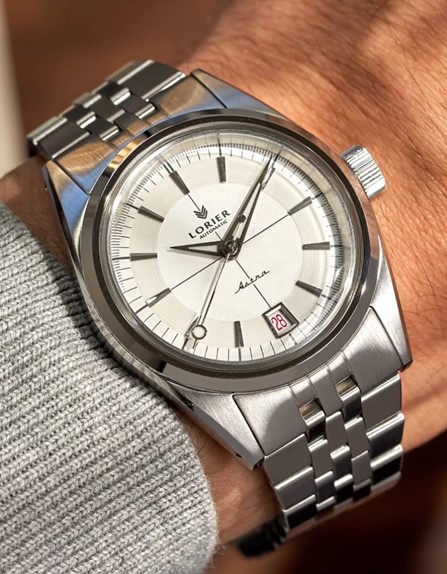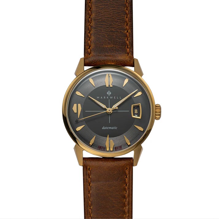 The numerals are playfully oversized. It has a readable date window. The case is 37mm which is in the Goldilocks zone for those who love vintage and modern watches. 37mm should be more common. The dial draws inspiration from the 1950’s with dagger indices and dauphine hands: chef’s kiss.
